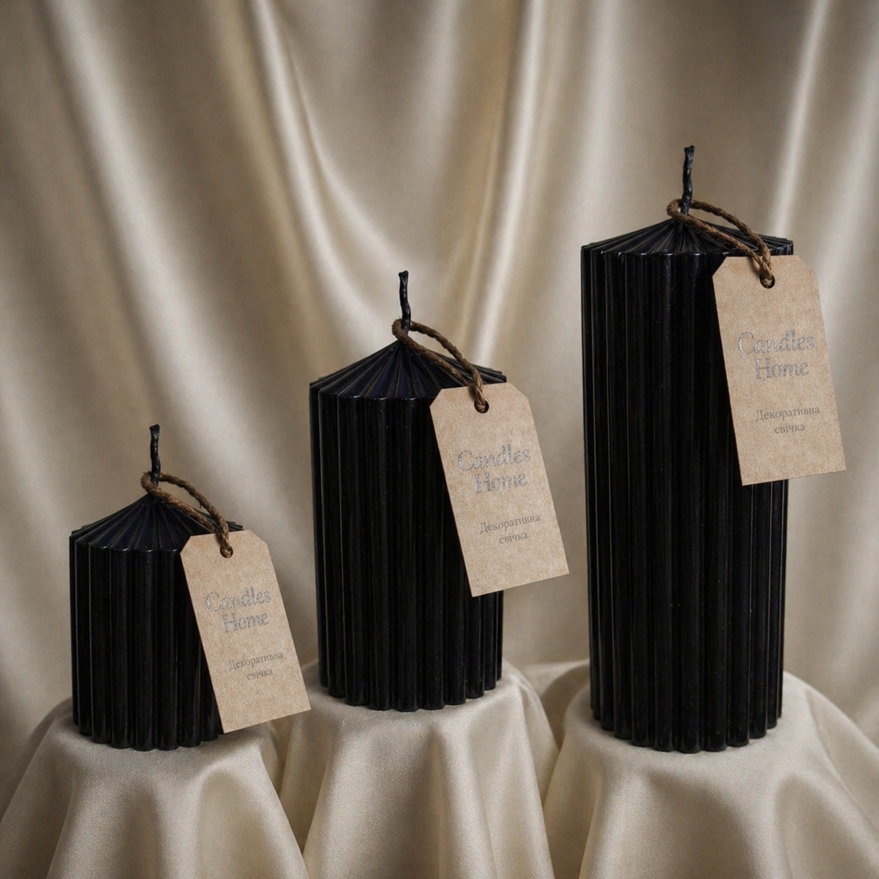3 свічки · 22.5 / 15 / 8 см · чорний